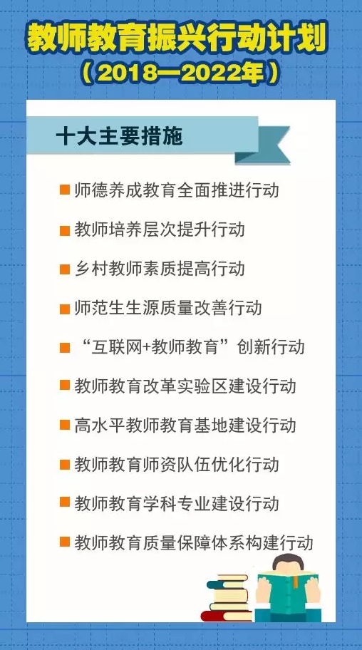 日前,教育部、国家发展改革委、财政部、人力资源社会保障部、中央编办联合印发《教师教育振兴行动计划(2018—2022年)》。《计划》明确了当前和今后一段时期教师教育振兴发展的目标任务和十大行动。具体有哪些内容?一起看。